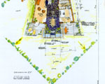 Ess- bzw. Pflanzenbereich im Atrium schwebt als Glaskorpus über einen