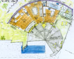 Bauform leitet die Hangkräfte (wie ein Staudamm) seitlich ab, steht als Baukörper